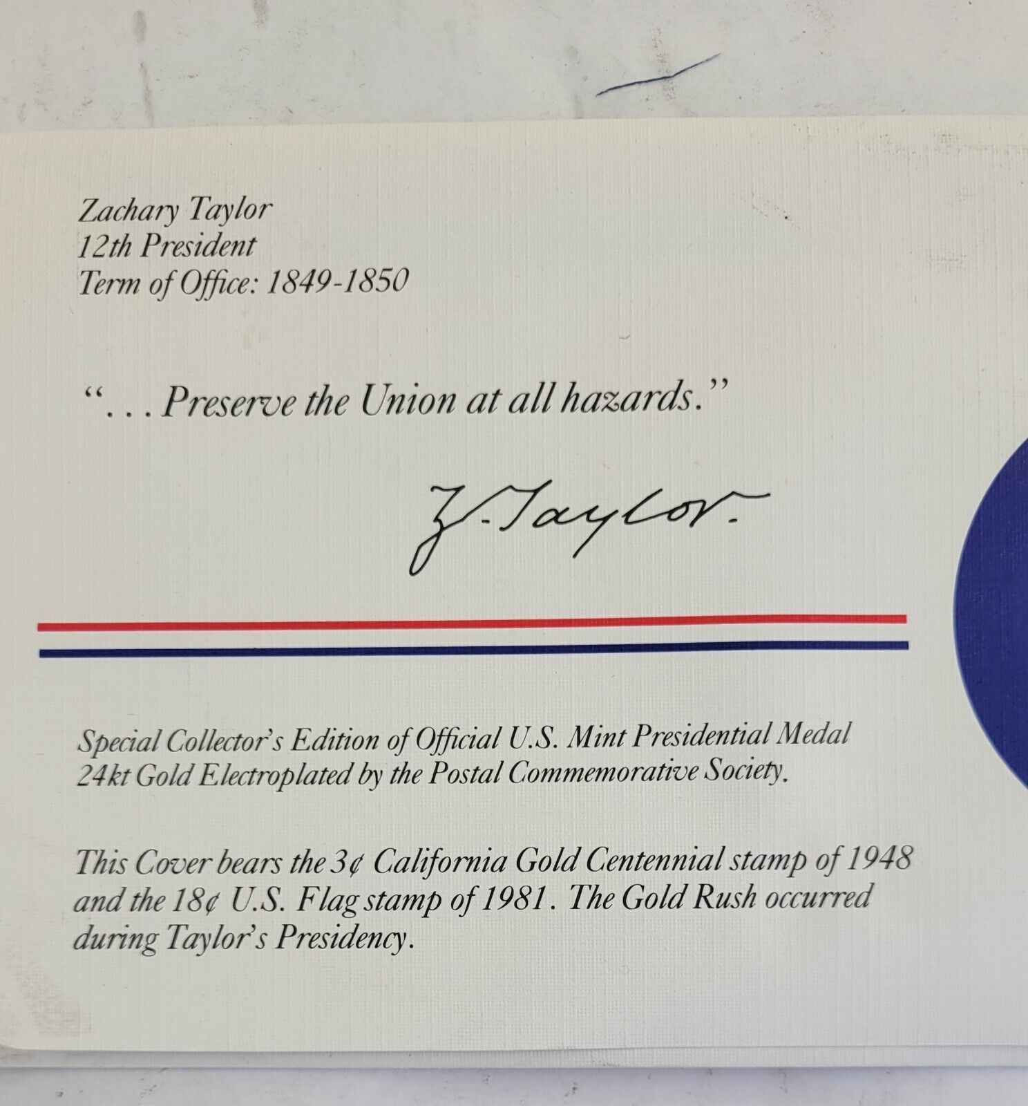 Z Taylor Presidential Covers Medal Postal Commemorative Society Gold Plated